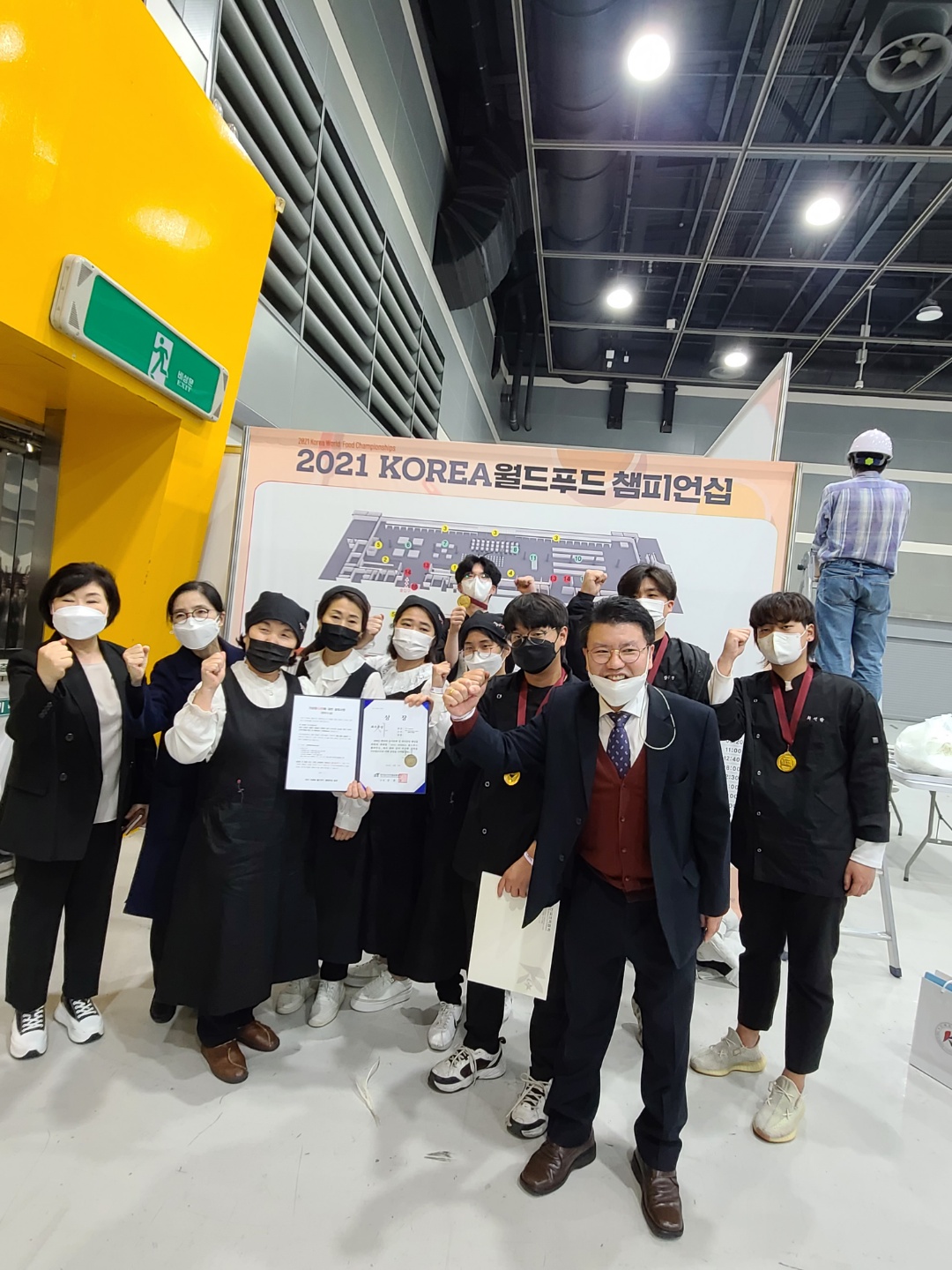 지난 25일부터 2까지 4일간 서울 양재동 aT센터 2전시장과 각 대학에서 분산 개최한 ‘2020 대한민국 국제요리&제과경연대회’가 열렸다. 통일부, 농림축산식품부, 교육부, 행정안전부, 보건복지부, 해양수산부, 환경부, 고용노동부, 중소벤처기업부, 서울특별시, 식품의약품안전처, 농촌진흥청, aT한국농수산식품유통공사, 수협, 한국산업인력공단 등 정부 부처 등 27개 유관단체가 후원하고 중국, 일본 등에서 2000여 명이 출전한 국제규모의 요리경연대회다. 이번 대회 라이브 경연대회에 출전한 유원대 호텔외식조리학과 유원대팀(박운식, 박신후, 임규진, 이용혁)이 최고의 영예인 대상을 수상했다. 이들은 영동산 블루베리 와인을 활용해 만든 갈릭마요 요거트를 곁들여 독창적인 맛의 돼지 갈비찜을 선보이며 심사위원들의 극찬을 받았다. 망고퓨레&흑임자 소스 새우테린과 웰링턴 스타일의 돼지 갈비찜, 초콜릿 말차 무스로 구성한 3코스 메뉴로 라이브경연 대상에 이어 통일부 장관상도 추가 수상했다. U1 2팀(송영헌, 윤근주, 이상연, 노형주)도 유자 머랭소스를 곁들인 새우 새면말이 튀김과 영동와인소스를 곁들인 전복과 꾸리살 약밥 롤라드, 딸기 판나코타 메뉴를 선보여 금상을 받았다. 이번 대회에 총 10명이 출전한 유원대는 3코스 라이브 경연과 전시 부문에서 참가자 전원이 금상을 받고, 대상과 통일부 장관상을 수상하는 진기록을 세웠다. 특히 유원대팀은 충북 영동지역의 특산품인 일라이트 돈육과 블루베리, 곶감, 포도, 와인 등을 활용한 작품을 선보이며 지역사회의 우수 농산물을 널리 홍보하는 데에도 일조했다는 평가를 받았다. 이번 대회에서 학생들을 지도한 허영욱 교수는 “매년 각종 요리대회에서 우수한 성적을 거두게 된 것은 유원대학교의 특화 프로그램인 비교과 활동 지원과 학과의 자랑인 브랜드 셰프 양성 교육의 결과”라고 소감을 밝혔다