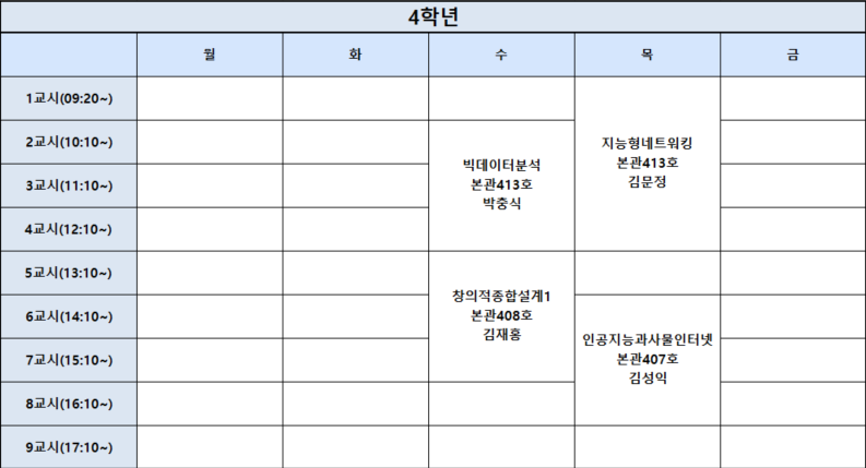 2026-1학기 4학년 시간표