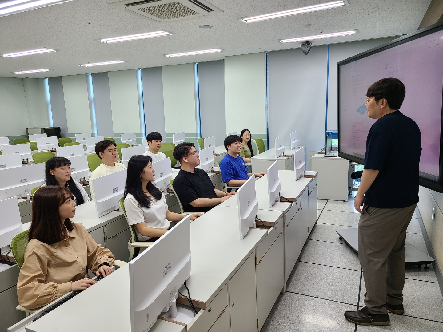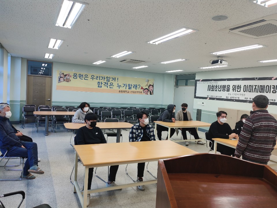 학과 홍보동영상 촬영 및 인터뷰 ⊙ 홍보촬영 지도를 위한 참여교수 : 김재홍, 김문정, 박충식 ⊙ 홍보촬영 참여 학생 : 3학년(김유근, 이민우, 허성우, 권하은) 4학년(오준근, 김기환, 김호준) ⊙ 인터뷰 학생 : 김유근, 권하은, 이민우 ⊙ 인터뷰 내용(학과 장점, 커리큘럼, 취업준비등) 1. 본인소개 2. 학과소개 3. 진학하게된 계기 4. 프로그래밍 학원은 필수인가? 5. 소프트웨어학과와 공학과의 차이는? 6. 컴퓨터 추천 OR 노트북 추천 7. 진로는 어디로 나가요? 8. 컴퓨터 고쳐달라. 컴퓨터 추천해달라 이런말 많이 듣나요? 9. 학교에서 게임도 하나요? 10. 개발해보고 싶은 프로그램은? 11. 미래의 후배들에게