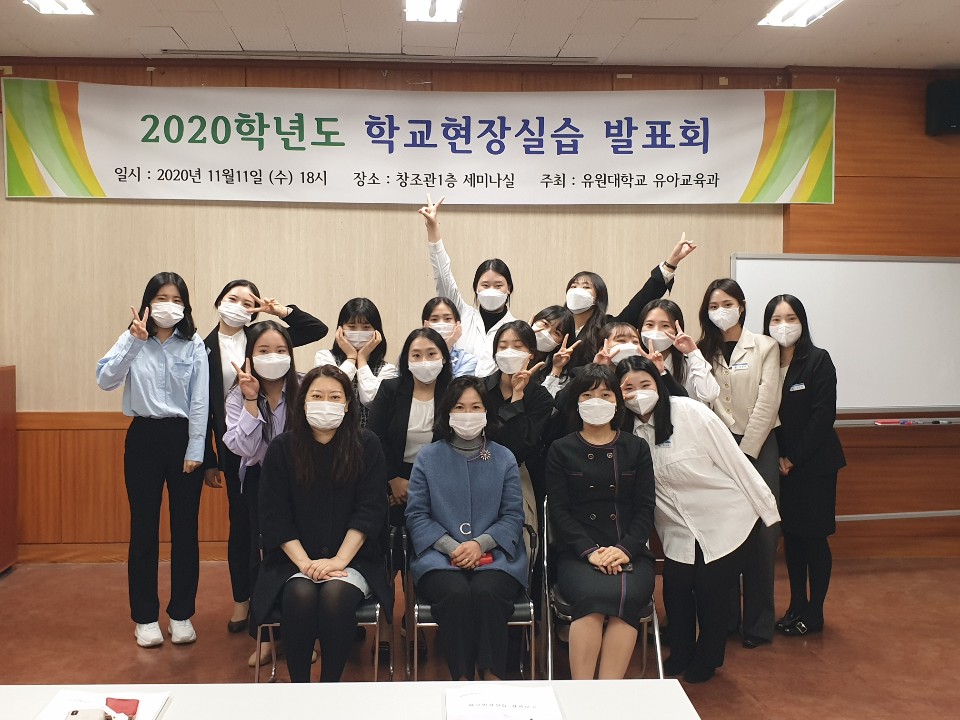 4학년들의 학교현장실습 모습입니다. 학교현장실습은 유아교사로서의 자질과 능력을 배양하고, 대학에서 배운 이론 및 실무를 교육현장에 적용해 보는 기회로_ 현장수업을 관찰하고 수업을 직접 담당해 봄으로써 교사로서의 자질과 품성을 기르며 교직에 대한 자신감과 긍지를 갖는 기회가 되었을 것입니다. 4월 중 4주에 걸쳐 매주 금요일마다 주 1회씩 진행된 사전실습을 토대로 본 실습은 이후 4주(20일)동안 진행되었고, 2주차에 부분수업으로_ 이야기 나누기(가을에 볼 수 있는 곤충), 신체(탈춤놀이), 음악(인절미와 총각김치), 동화(거울 소동), 음악(독도는 우리땅), 동극(커다란 순무), 게임(송편을 바구니에 넣어요), 미술(청사초롱을 만들어요), 동화(팥죽할머니와 호랑이) 등이 전개되었습니다.