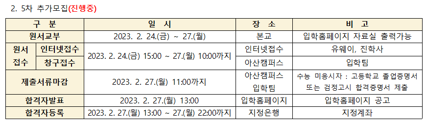2023학년도 5차 추가모집 안내